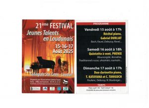 - Concert de deux franco-japonais à Loudun 17 août 2025Cet événement a lieu dans le cadre du festival « Jeunes talents en Loudunais », qui a lieu du 15 au 17… Lire la suite : Concert de deux franco-japonais à Loudun 17 août 2025